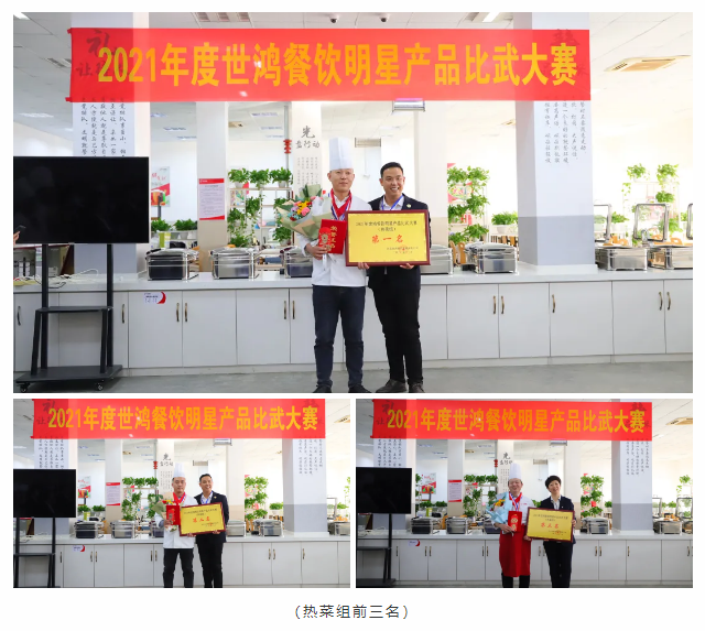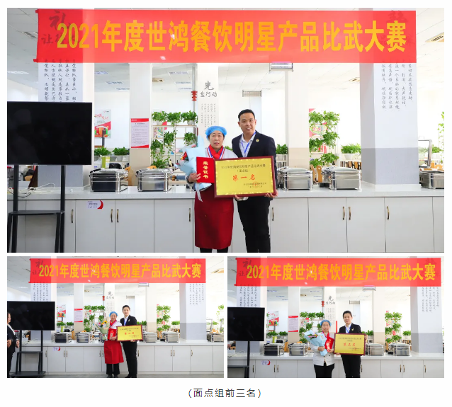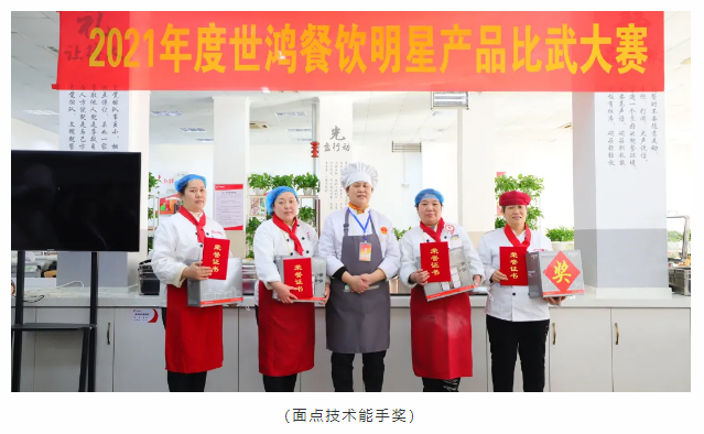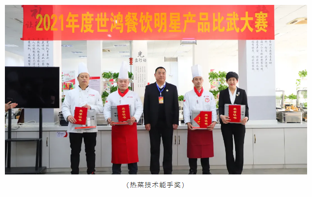 厨艺比赛分为热菜组和面点组两项比赛,每位选手都是精心准备、认真制作,激烈对决,缤纷呈现,将这一年的努力付出和用心态度都带入参赛作品中。经过评委们严谨认真的评审后最终评选出热菜组和面点组的前三名和技术能手奖。颁奖环节是最令人激动的环节,每一位获奖者由颁奖嘉宾用鲜花邀请至主席台,现场尽是大家热情的祝贺和掌声,充满仪式感的颁奖环节令世鸿的家人们开心而感动。大赛是对各项目厨艺基本功的检验,同时利用这个平台可以使大家相互取长补短,厨艺技能得以提升。新的一年,完美世界竞技将紧跟时代步伐,不断推陈出新。做高品质团餐,更好的服务于社会。